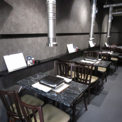 カウンター2席の他、4名様掛けのテーブルを3卓と6名様掛けのテーブルを1卓をご用意しておりますので、ご友人と飲み会や、一人飲み・一人焼肉など用途にあわせてご利用いただけます。